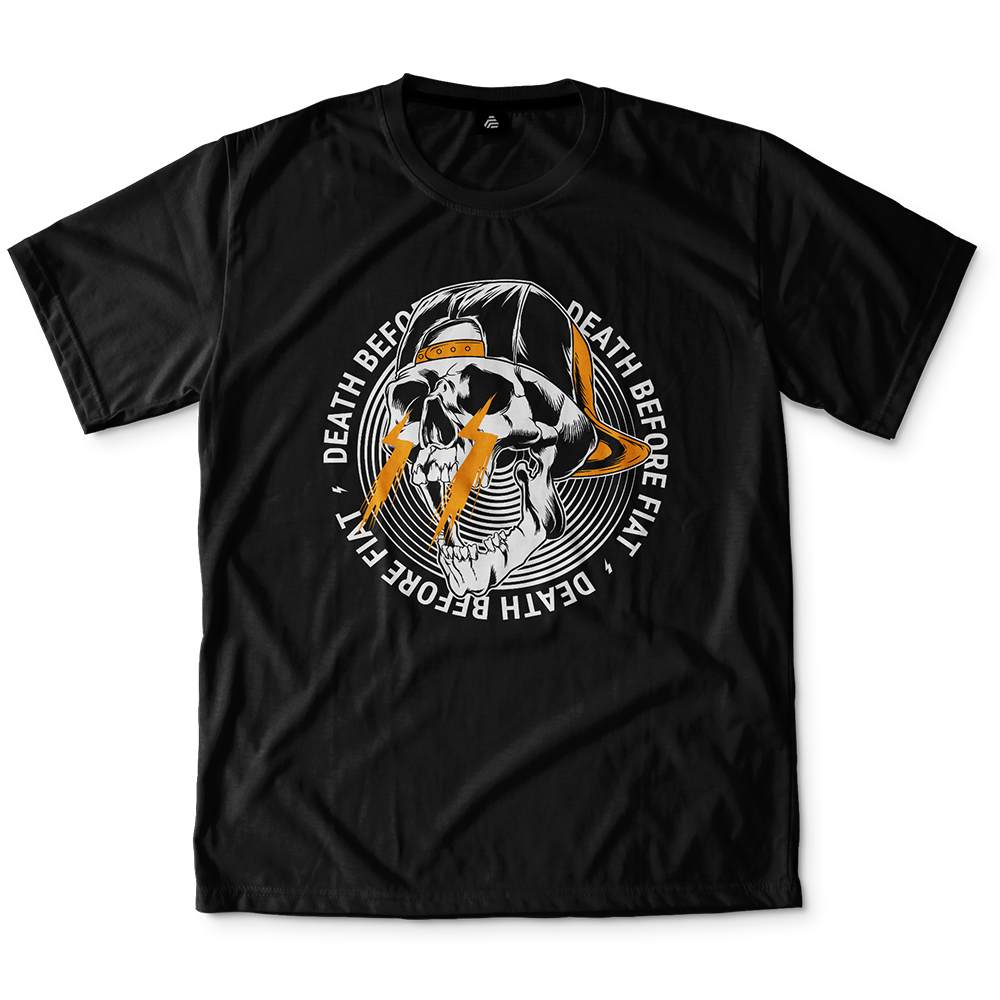 💀⚡️ Electrified and fearless — The Death Before Fiat tee isn’t just a shirt — it’s a stand against broken money. A skull with lightning eyes, bold lines, and a message that refuses to fade. Born from the spirit of Bitcoin, it embodies the fight for sound money, freedom, and truth in a world built on inflation and control.